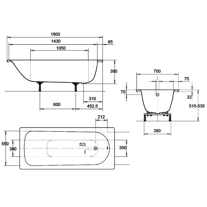 Стальная ванна Kaldwei Eurowa 119712030001 160x70 -Классический прямоугольный вариант одиночной ванны с боковым сливом-Стальная эмаль (2,3 мм) устойчива к царапинам и коррозииВанна Eurowa изготовлена из стали, которая обеспечивает прочность и долговечность, в тоже время дизайн разработан с учетом удобства и комфорта при использовании. Кварцевая эмаль стальной ванны Eurowa не боится ударов, коррозии и легко чистится обычными бытовыми средствами для ухода за плиткой и стеклом. Ванна Eurowa отлично сочетается с маленькими пространствами и выглядит красиво и элегантно в любой ванной комнате.Ножки приобретаются отдельно