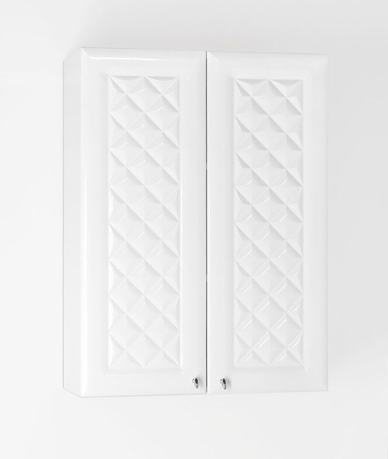 Подвесной шкаф бренда "Style Line" коллекции "Канна" с современной 3D фрезеровкой фасада, которая придает мебели индивидуальность и особый колорит. Фурнитура - хром, петли на дверцах с механизмом плавного закрывания