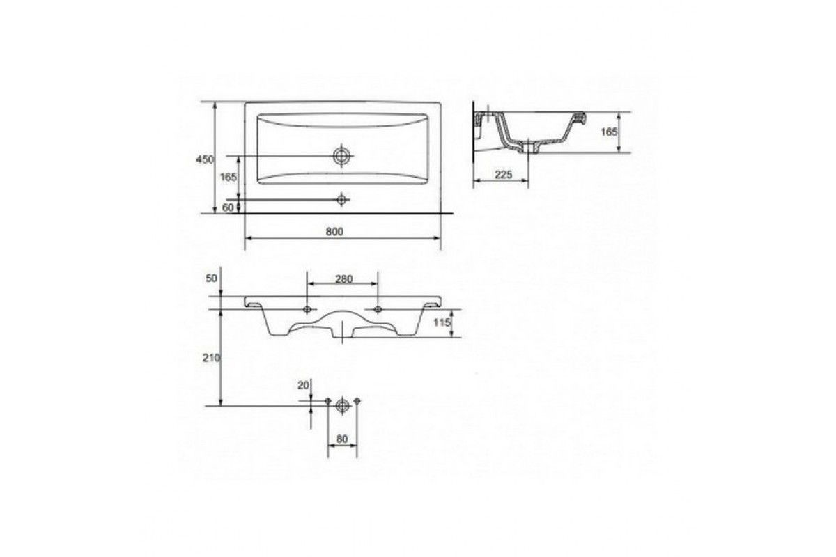 Размер (ШхВхГ): 800х165х450 мм.