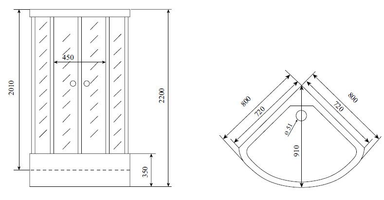 Форма четверть круга, Управление сенсорное, Зона гидромассажа гидромассаж спины