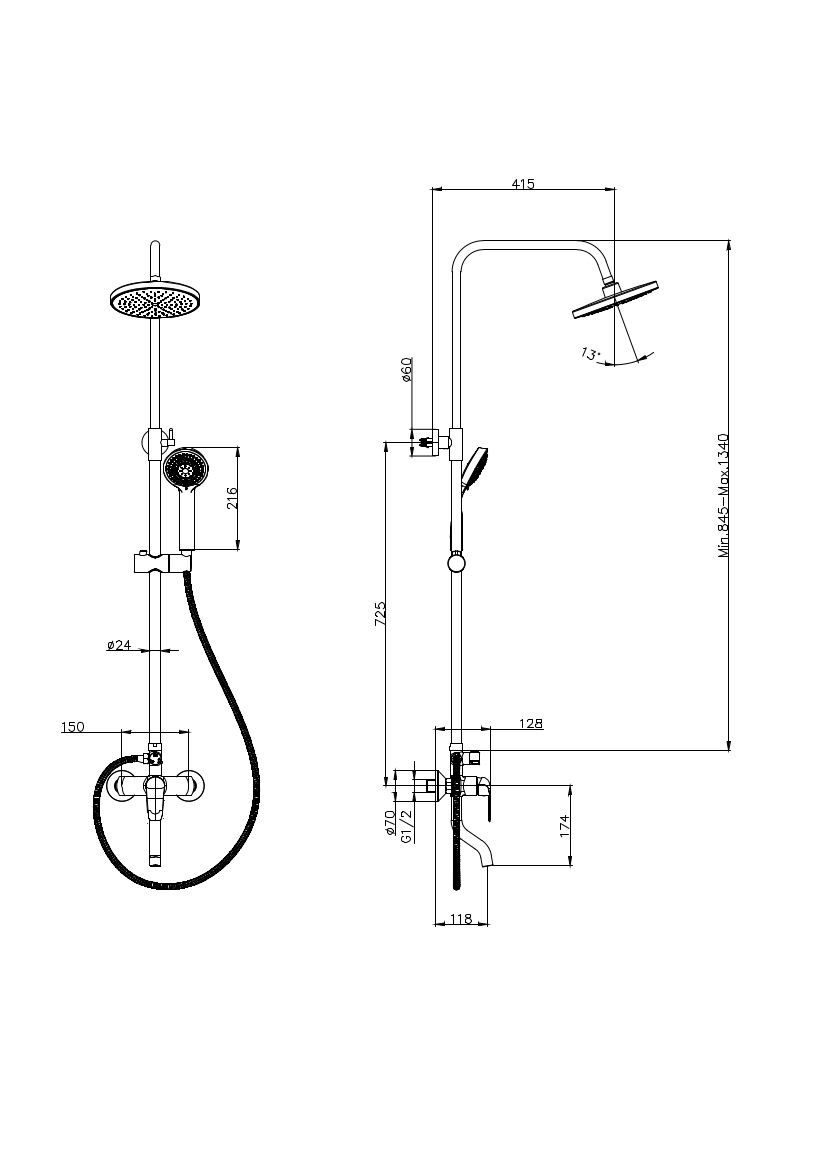 - Тип:душевая система со смесителем