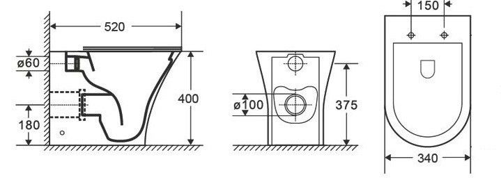 - Укороченный унитаз:нет