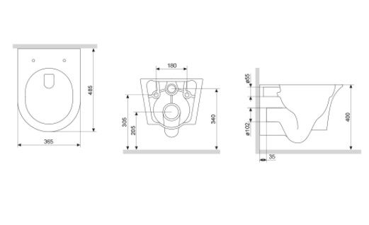 • Прилегание унитаза к стене: