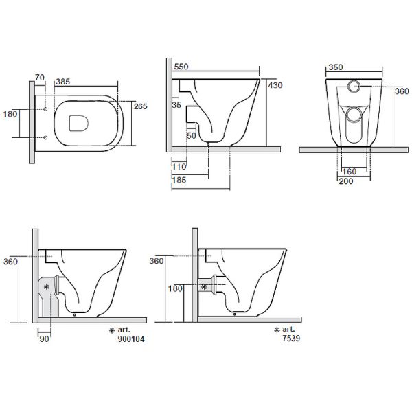 • Прилегание унитаза к стене: