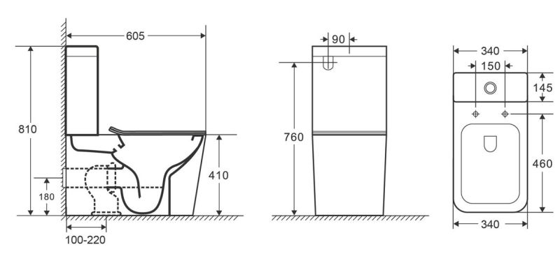 • Прилегание унитаза к стене:
