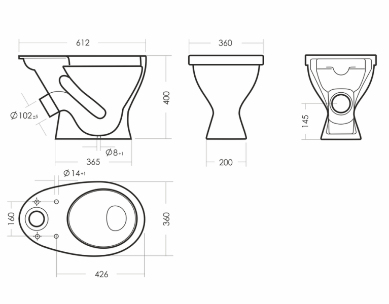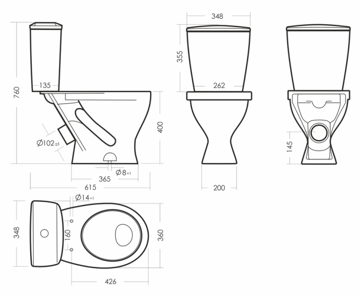 Размеры унитаза-компакта: 615 x 360 x 760