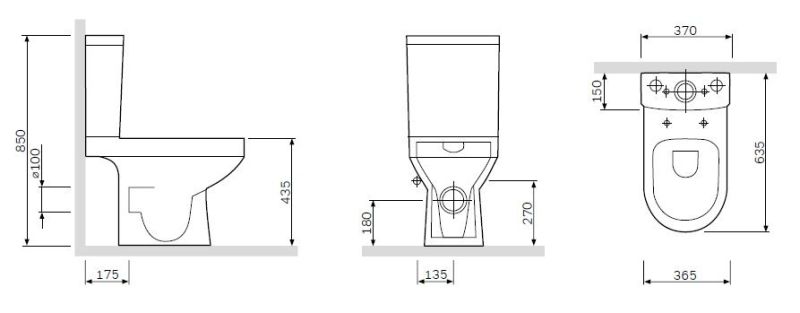 • Прилегание унитаза к стене: