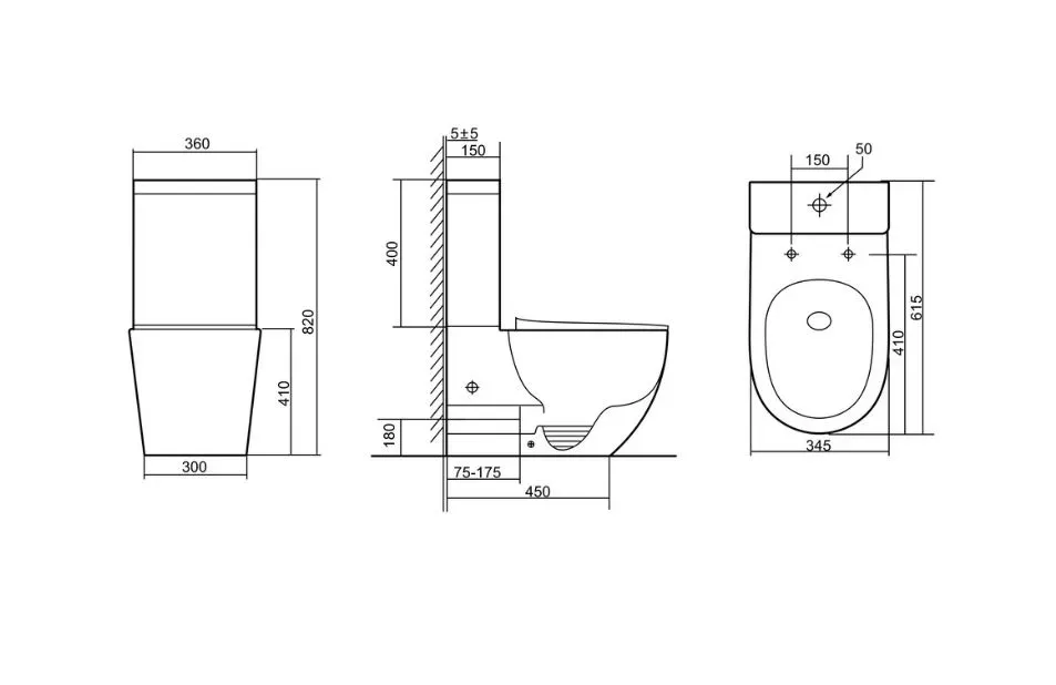- Прилегание унитаза к стене:с отступом