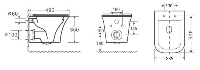 - Укороченный унитаз:нет