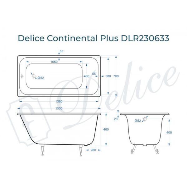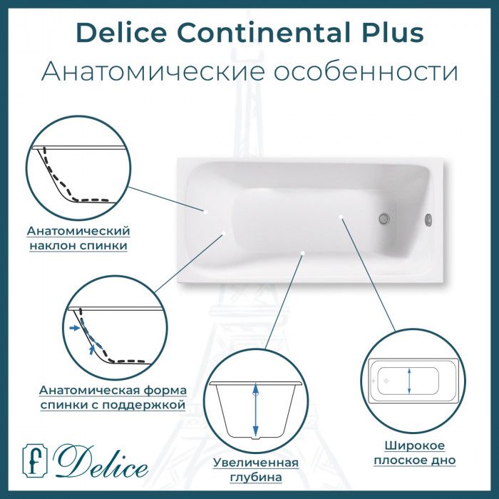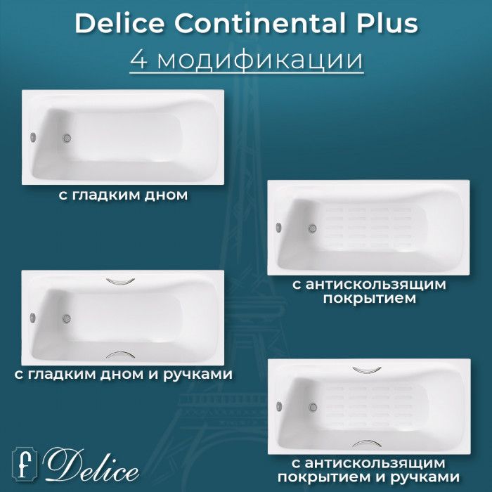 Ванна чугунная Delice Continental PLUS DLR230633 150х70 см купить
