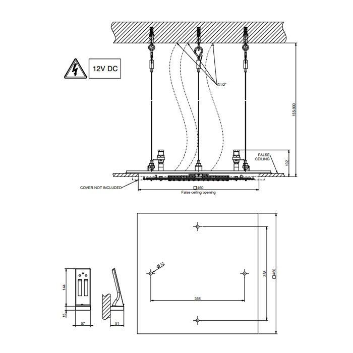 В комплект входит пульт управления с держателем. Для полноценного функционирования душевой системы потребуются дополнительные компоненты: блок питания 12В (арт. RIR5402) и накладная панель (арт. 57977).