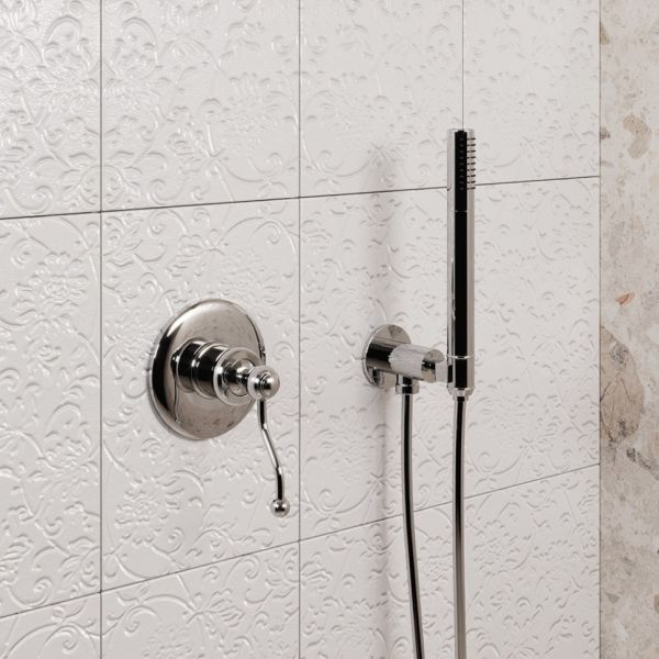 Встраиваемый смеситель для душа внесет в ванную комнату элемент ретро, на виду останется только рычаг затейливой формы. Смеситель позволяет сделать 1 выход для воды и подключить либо верхний душ, либо лейку, либо излив. Встраиваемая сантехника PAINI поставляется в полном сборе - внутренняя и внешняя часть. Антикварные формы DUOMO будут органично смотреться в стилях классика, винтаж или по-новому раскроют интерьер в стиле фьюжн.