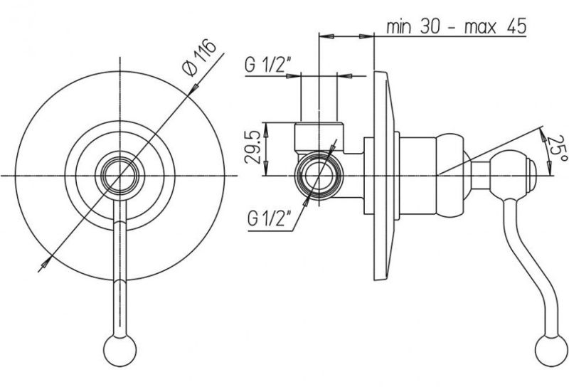 - Встраиваемый монтаж скрывает все соединения и оставляет на виду только рычаг управления, экономя пространство.