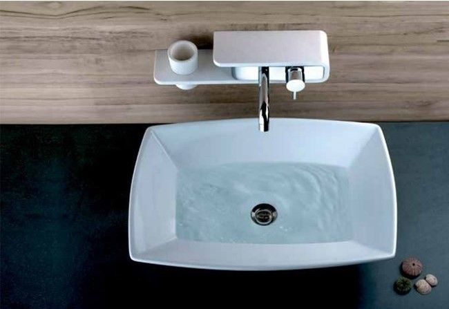 - Полочка из искусственный камня – оригинальное решение для оптимизации места в ванной комнате.