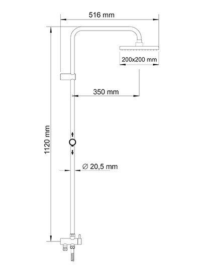 Размер верхнего душа, см:200