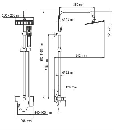 - Размер верхнего душа, см:20