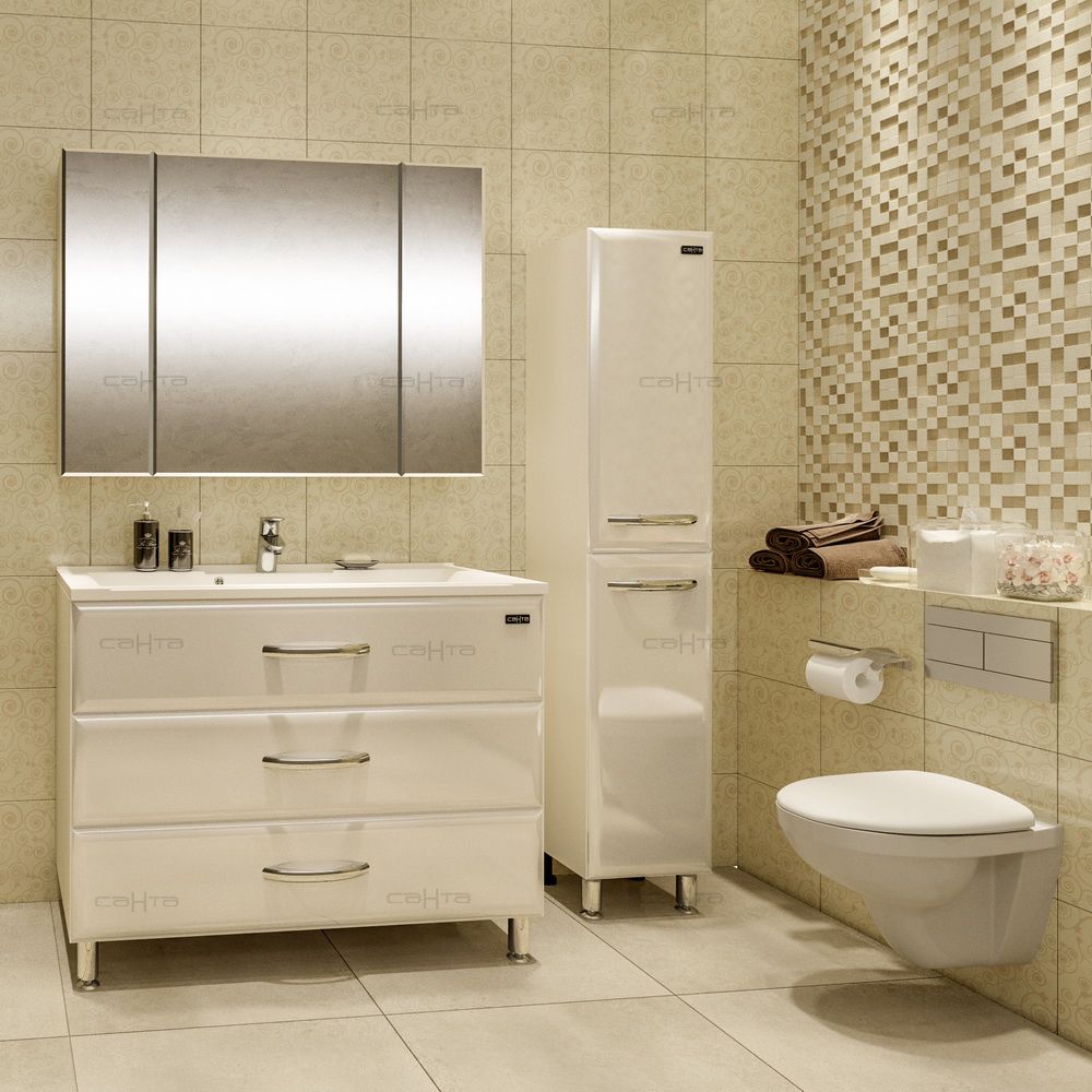 Зеркальный шкаф СанТа Стандарт 113012 100см белый купить
