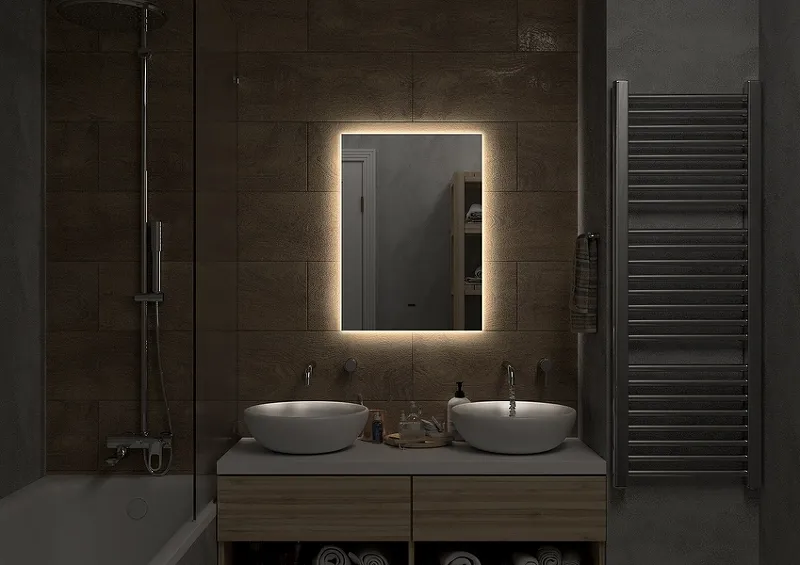 Зеркало Comforty Адонис 00-00013778 45 смЗеркало оснащено встроенным светодиодным светильником размещенным по периметру и бесконтактным сенсором включения подсветки. Изготовлено из зеркального полотна толщиной 4 мм производства ведущего европейского производителя зеркал AGC. Габариты (ШхВхГ): 450*700*30 мм. Температура подсветки: 6000К холодная. Зеркало поставляется в комплекте с настенным крепежом